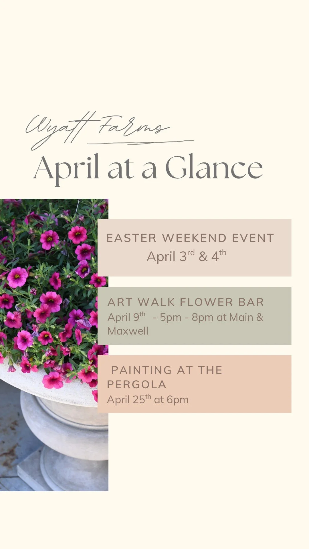 Wyatt Farms started in 2005 as a retail garden center and nursery. Services soon expanded to include landscape design and installation. Over the years, the grounds have grown to include beautifully landscaped areas for picnics and photo sessions, pastures for goats and a mini donkey, and an independent artist studio.
